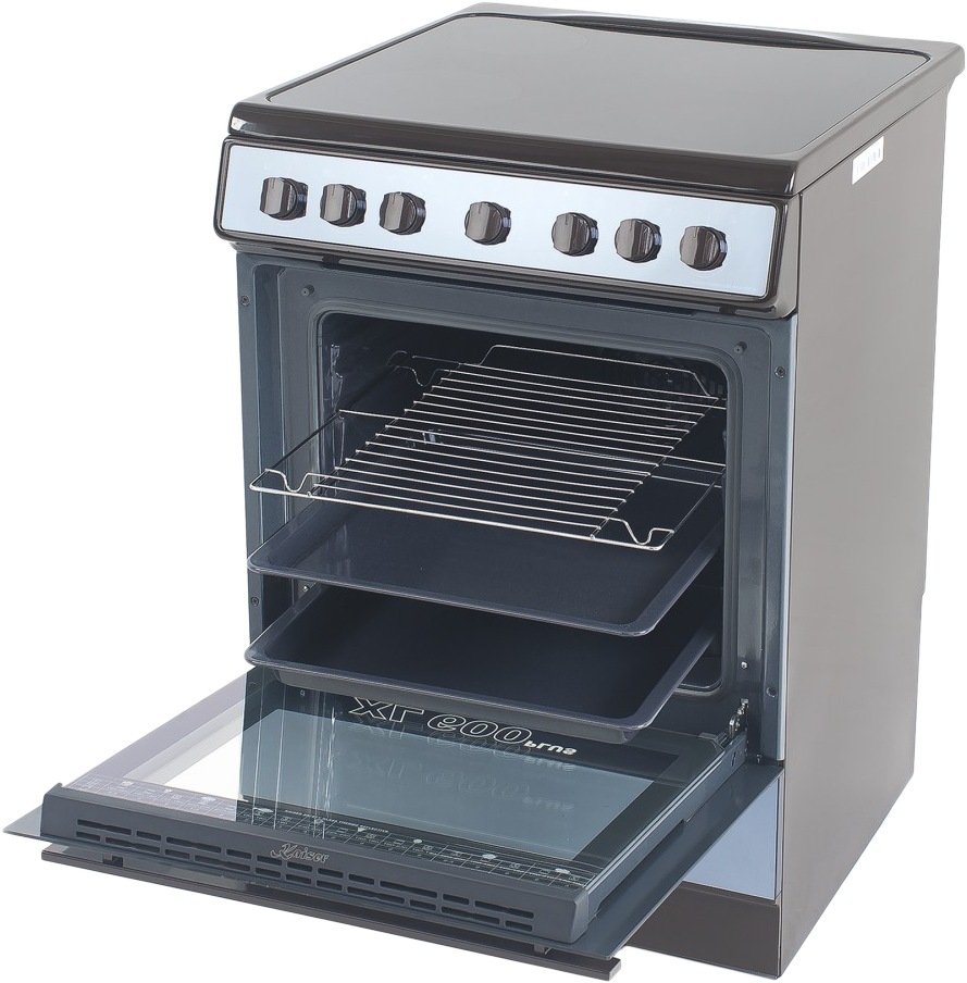 Духовка оборудована электрическим грилем, с помощью которого можно задавать аппетитную корочку различным блюдам. Для повышения уровня безопасности инженеры компании разработали специальную систему из 3 стекол в дверце. Эта инновация снижает температуру фронта в несколько раз. Внутреннее покрытие духовки - эмалированная сталь, за которой очень легко ухаживать.