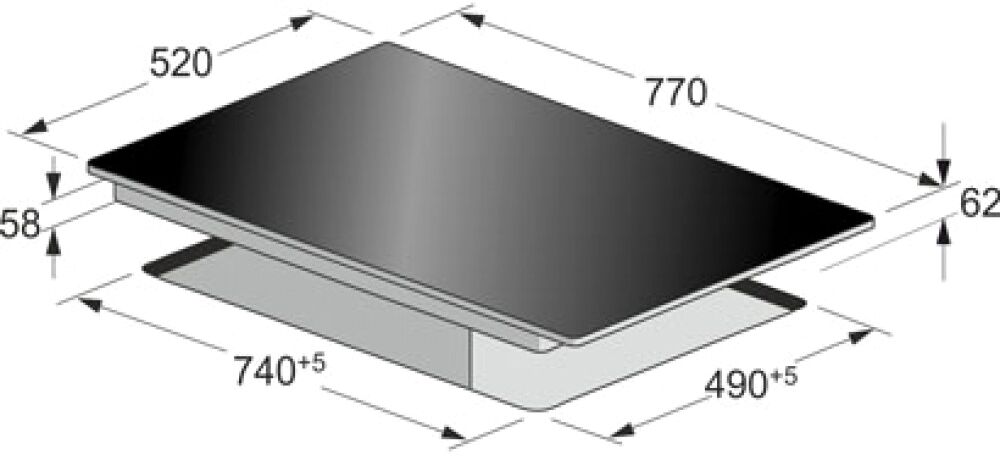 Минимальные размеры для встраивания (ШxГxВ), мм: 740x490x62